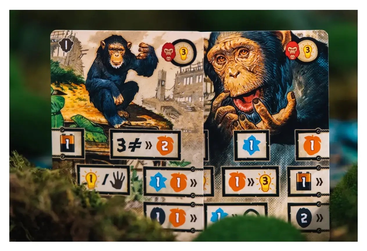 1 Spielbrett, 6 Spielertableaus, 12 Spielmarker, 24 Aktionsscheiben, 48 Startkarten, 120 Primatenkarten, 6 Spielhilfen, 120 Futtersteine, 47 Batterieplättchen, 7 Gegenstandsplättchen, Anleitung