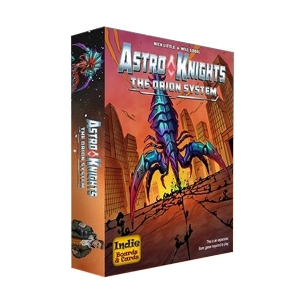 Astro Knights, The Orion System is an expansion for Astro Knights. Each stretch goal from the Kickstarter is collected in this expansion, providing more fuel, tech, and weapon cards with which to power your game!