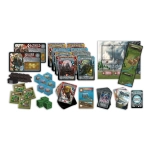 1 Zusatzspielbrett "Düstere Berge", 1 Erweitertes Markttableau, 24 Reisekarten, 1 Langschiff, 1 Promomarktstand, 3 Marktstände: (2 Händler, 1 Söldner), 100 Punktemarker, Spielfiguren für den fünften Spieler, 2 Anführertableaus, 24 Monsterkarten, 5 Runenkarten, 12 Bogenschützenwürfel, 1 Schicksalskarte, 24 Bergrisakarten, 1 Spielanleitung