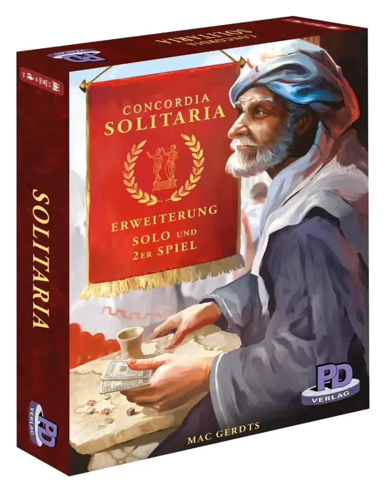 Mit Concordia Solitaria trittst Du allein oder zu zweit gegen den trickreichen Gegner CONTRARIUS an. Da Deine gespielte Karte zugleich auch die darauf folgende gegnerische Reaktion festlegt, führt nur eine sorgfältige Planung zum Sieg. Zu zweit könnt ihr CONTRARIUS als Team oder jeweils eigenständig herausfordern. CONCORDIA SOLITARIA kann auf allen Spielplänen und mit allen Erweiterungen gespielt werden. Nur mit dem Grundspiel CONCORDIA oder CONCORDIA VENUS spielbar.