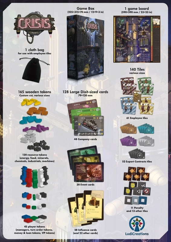 1 Spielplan, 1 Stoffbeutel, 128 Karten, 137 Papp-Plättchen, 165 Holzmarker