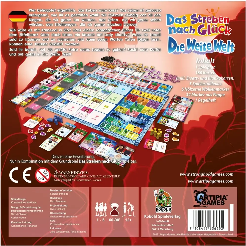Das Streben nach Glück lässt 1 bis 4 Spieler ab 12 Jahren die Leben ihrer eigenen Charaktere ausspielen (mit Nachbarschaftserweiterung bis zu 5 Spieler).
