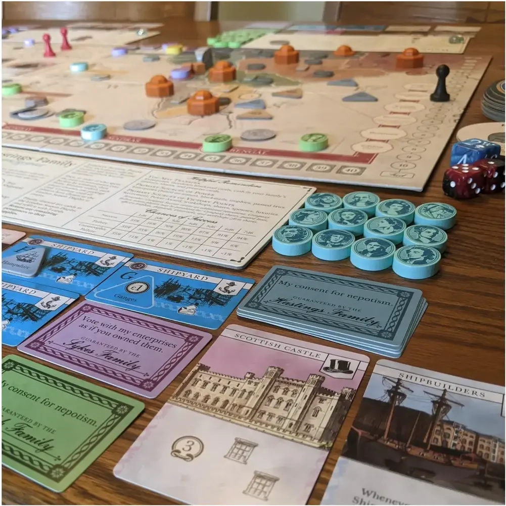 Deine Familie ist tief mit der „East India Company“ verbunden. Einige deiner Neffen dienen in der „Army of Bombay“ unter der Aufsicht deines ältesten Sohns. Nachdem er einige Gefälligkeiten einlösen konnte, hat dein Jüngster einen Posten im Parlament bekommen. Nun bedroht ein neuer Skandal den angeschlagenen Vorsitzenden. Dies ist der Moment, die Kontrolle über die Company zu übernehmen.
