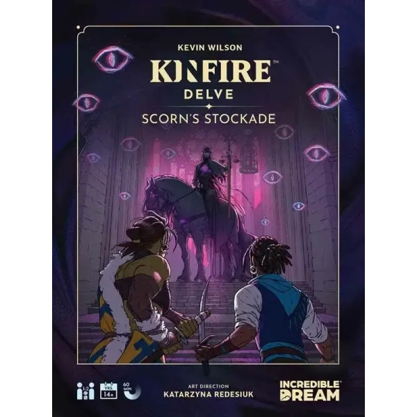In Kinfire Delve: Scorn's Stockade, a tactical and cooperative card game for 1-2 players, you will fight your way through the well deck of challenge cards to reach Scorn, the Master of the Well, and face them in an epic final battle.
