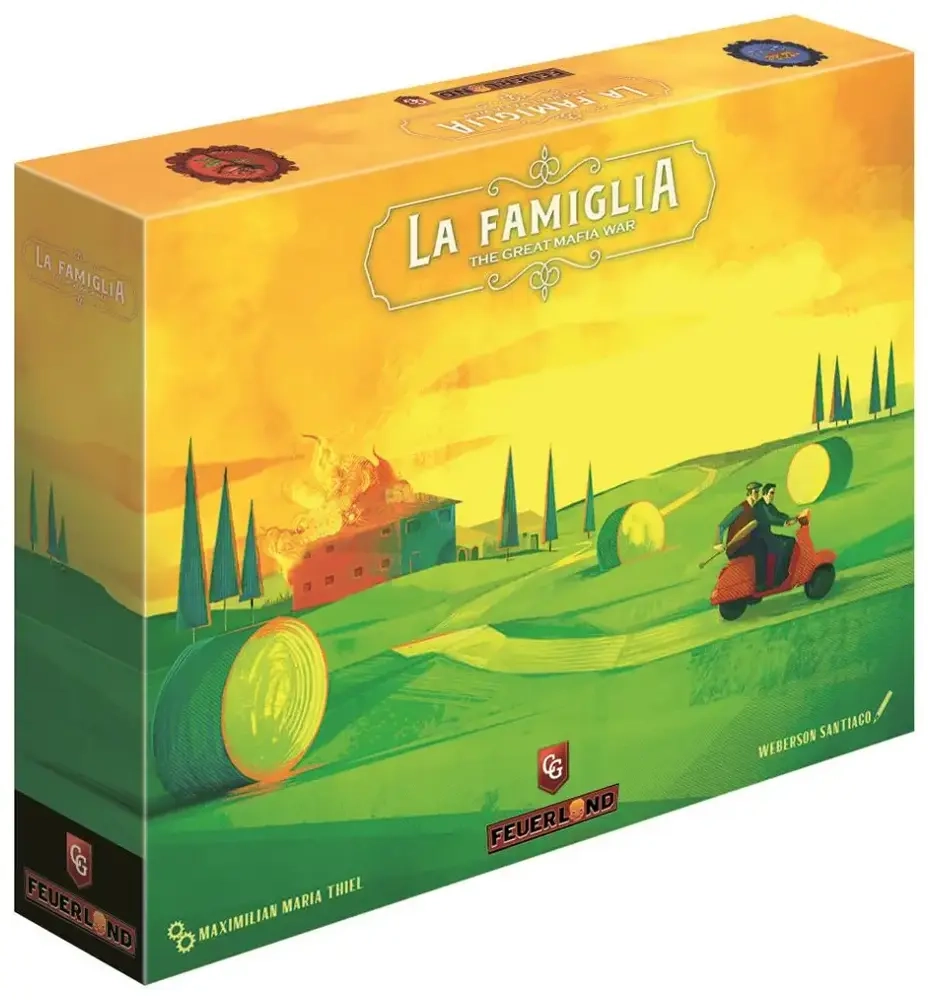 In La Famiglia, you play against each other in 2 teams (2 vs. 2) to take control of Sicily. During the planing phase, bring new fighters into the game, increase your influence and place secret orders.
