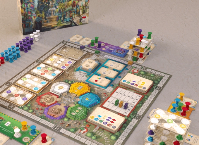 By the end of the game, all players will have gorgeous constructions consisting of up to 6 levels high in front of them, and whoever scores the most victory points for their tower, secret goal and divine blessings win!