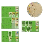 2 Zeiger, 2 Ertragsräder, 110 Karten, 450 Spielmarken, 22 Landschaften, 22 Holzteile, 8 Übersichtsblätte, 1 Wertungsblock, 2 Spielregeln