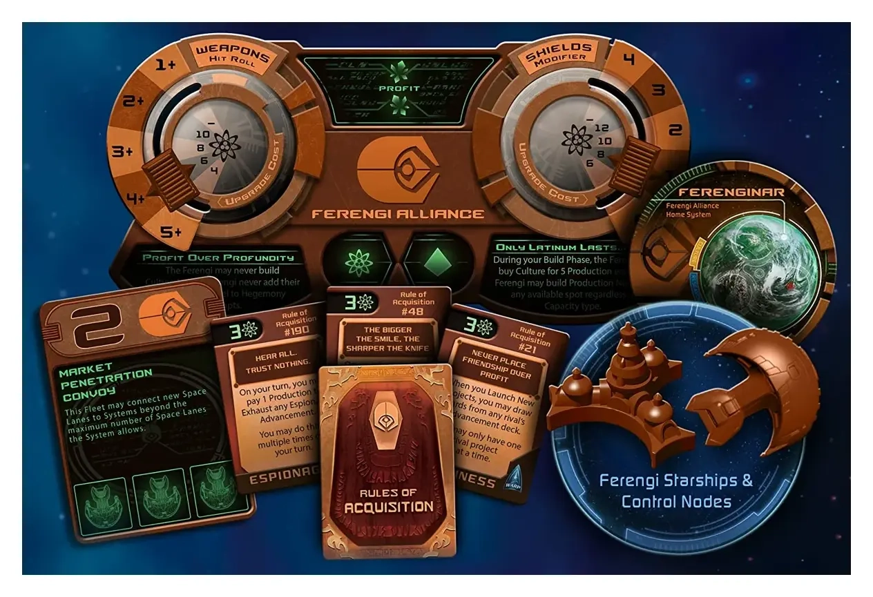 The Ferengi Alliance Set adds new Star Systems, new Exploration Cards, plus all the components to add another player to your games.