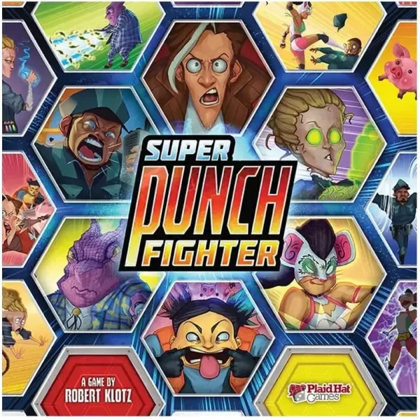 Super Punch Fighter is a game of arena battle and video-game powers for 1-6 players. Choose a fighter, grab their deck, and start knocking your opponents off the stage. Each knockout earns you a star, and grabbing an achievement card earns you extra stars. The first player to reach nine stars wins!