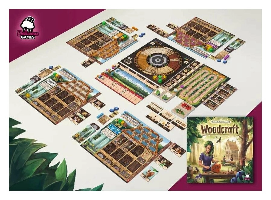 In Woodcraft, you play as forest people running competing workshops in the woods, with you gathering wood and crafting goods for your customers. Along the way, you hire helpers, improve your workshop, and buy different types of wood and other tools to create the best workshop you can.