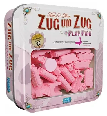 Play Pink ist ein Spenden-Projekt zur Unterstützung der Prävention und Früherkennung von Brustkrebs in Zusammenarbeit mit Brustkrebs Deutschland e.V.. Für jedes verkaufte exklusive Set werden 2 Euro an Brustkrebs Deutschland e.V. gespendet. Play Pink ist ein komplettes Set von Zügen und Bahnhöfen, um die Brettspiele Zug um Zug und Zug um Zug – Europa mit einer einzigartigen pinken Farbe zu spielen.