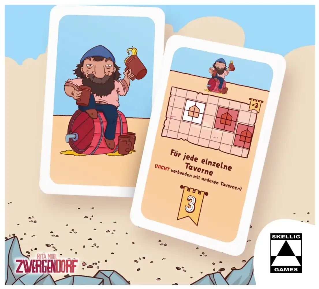 In Zwergendorf, dem Zwergen-Draft-and-Draw-Spiel von Rita Modl, das anspruchsvolle Familienspieler und Kennerspieler gleichermaßen anspricht, errichtet ihr euer eigenes kleines Zwergendorf.