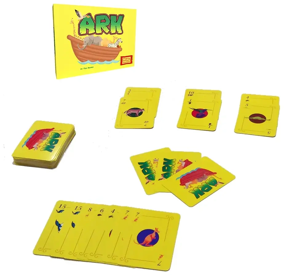 Ark is a simple card game in which players are trying to collect pairs of animals for their ark. On each turn a player adds animals from their hand of cards to one of the boats.