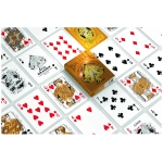 Im chinesischen Jahr des Drachen 2024 feiern wir Stärke und Glück mit den Bicycle Gold Dragon-Spielkarten! Die Figuren auf den Bildkarten sind in typische (goldfarbene) Kleidungsstücke gehüllt - die Joker werden von den namensgebenden Drachen geziert.