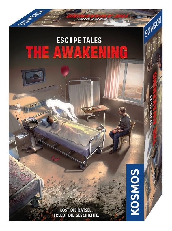 "Escape Tales – The Awakening“ basiert wie die erfolgreiche Reihe „EXIT – Das Spiel“ auf dem Prinzip von Escape Rooms. Anders als bei EXIT geht es beim Brettspiel „The Awakening“ jedoch nicht darum, das Spiel möglichst schnell zu beenden. Stattdessen wird der Fokus auf eine packende und düstere Hintergrundgeschichte gelegt: Der alleinerziehende Vater Sam muss mit ansehen, wie seine 14-jährige Tochter Lizzy ins Koma fällt.