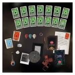 1 Decodier-Scheibe, 118 Karten, 5 seltsame Teile, 1 Brief, 1 Polaroid, 1 verschlossenes Poster, 3 Schädel, 1 Teelicht, 1 verschlossene Kiste, 1 Standfuss, 1 Spielanleitung