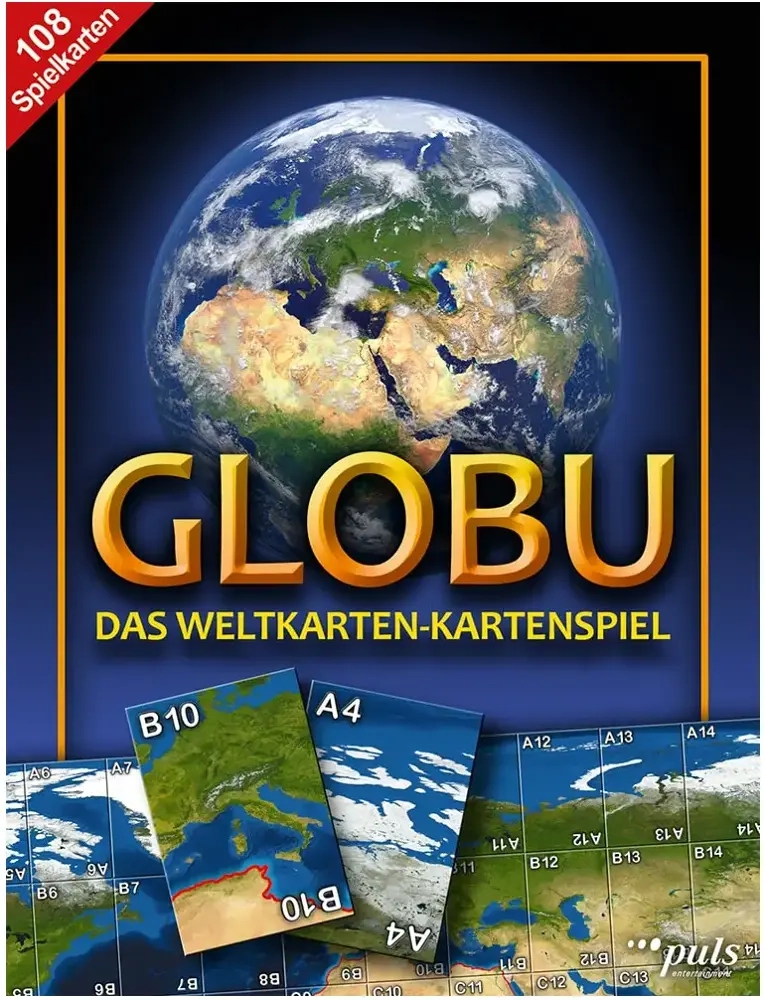 Wir bauen eine Welt - Zug um Zug... Das Welt-Karten-Karten-Spiel GLOBU besteht aus 108 Karten, die als Raster fertig gelegt eine Weltkarte bilden. Wer zuerst alle seine Karten korrekt anlegen konnte, gewinnt. Doch so einfach ist das Weltgeschehen nicht, denn es gelten gewisse Regeln... Die GLOBU-Weltkarte ist 18 Karten breit (1-18), 6 Karten hoch (A-F) und misst fertig gelegt ca. 73x35 cm.