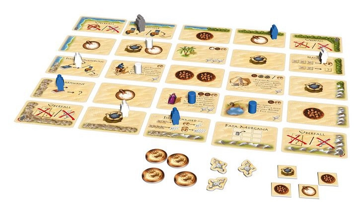 Alles liegt offen aus. Wo soll man seine Tuareg-Figuren setzen? Salz braucht man, aber auch Pfeffer. Wenn man nicht zum Händler geht, kann man nicht tauschen. Wie soll man sich entscheiden? Wer zu lange wartet, verpasst die Gelegenheit ein Geschäft zu machen. Nur wer seine Figuren clever platziert, dem Mitspieler im richtigen Moment das Leben schwer macht und die passenden Ausbauten erwirbt, kann gewinnen.