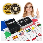 Lernen Sie etwas über die Geographie der Welt und haben Sie dabei viel Spass. Dieses Kartenspiel in Reisegrösse enthält 194 Länderkarten und eine Weltkarte.