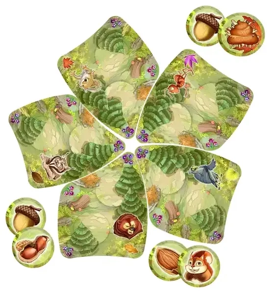 El juego consta de un tablero modular muy innovador adaptable al número de jugadores, así como conjuntos de frutos por ardillas.