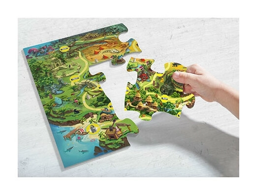 Die Spieler begeben sich auf ein spannendes Piraten-Abenteuer und finden eine Schatzkiste mit einem Zahlenschloss. Um den Code zu knacken, müssen sie gemeinsam die Rätsel auf der Rätselkarte lösen und mit der Spielfigur die richtige Anzahl an Feldern auf der zuvor gepuzzelten Schatzkarte vorwärts ziehen.