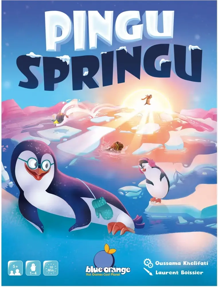 Im kooperativen Kinderspiel Pingu Springu versuchen die Spieler, ihre Pinguine über verschiedenförmige Eisschollen aufs sichere Packeis hüpfen zu lassen. Doch hierbei ist Geschicklichkeit gefragt: Jede Runde wird eine neue Eisscholle auf das Spielbrett geschoben, die den Weg zum Packeis vervollständigt.