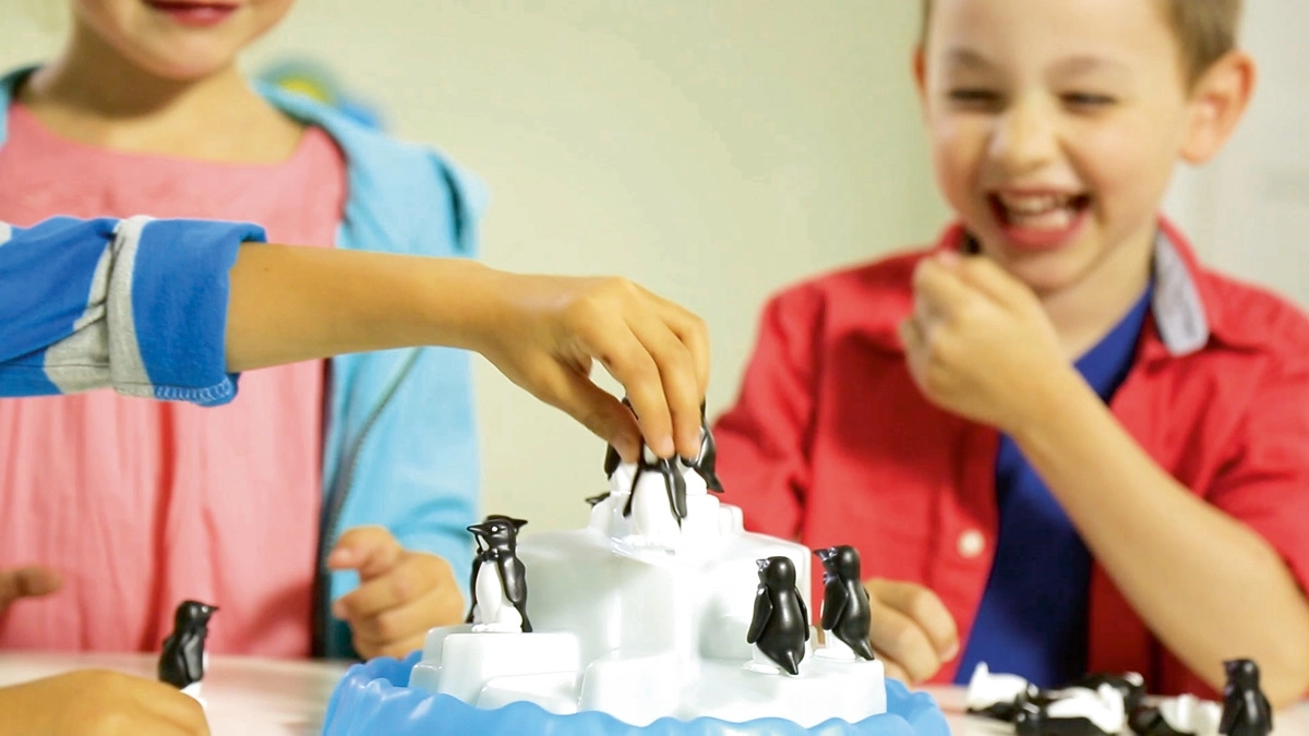 Viele kleine Pinguine und ein schwankender Eisberg: Wer darauf für alle seine drolligen Kerlchen ein sicheres Plätzchen sucht, braucht mächtig Fingerspitzengefühl. Da bleiben manche standhaft, manche wackeln, andere purzeln herunter. Welche Pinguin-Mannschaft hat da wohl den Schnabel vorn?