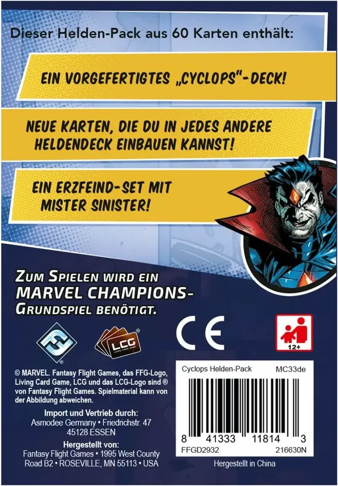 Jetzt führt Cyclops den Angriff in Marvel Champions: Das Kartenspiel an. Cyclops ist ein geborener Anführer und ein brillanter Taktiker, was ihn zu einem grossen Gewinn für jedes Team macht. In diesem Helden-Pack finden die Spieler Cyclops, seine fünfzehn Signaturkarten und ein komplettes Sortiment an Karten des Führungsaspekts, die die Spieler dazu einladen, ihre Verbündeten zum Sieg zu inspirieren.