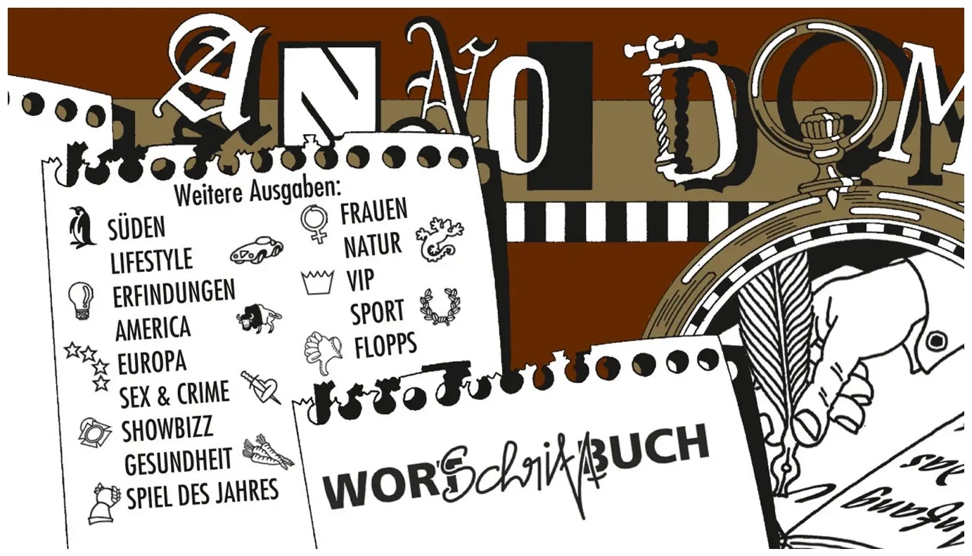 Bei ANNO DOMINI kommt es nicht auf exaktes Wissen an. Denn wer weiss schon, ob „08/15“ zum Inbegriff von lieblos gefertigter Massenware wurde, bevor oder nachdem die Amerikaner den Hamburger in „Salisbury Steak“ umbenannten. Reihum fügt jeder Spieler der Kette aus meist kuriosen Ereignissen ein neues hinzu und versucht so, als Erster seine Karten loszuwerden.