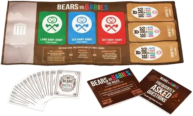 Bears vs. Babies ist ein Kartenspiel, bei dem ihr monströse Bären zusammenstellt (wie die Schachtel schon zeigt), um schreckliche Babys zu fressen – mnom mnom.