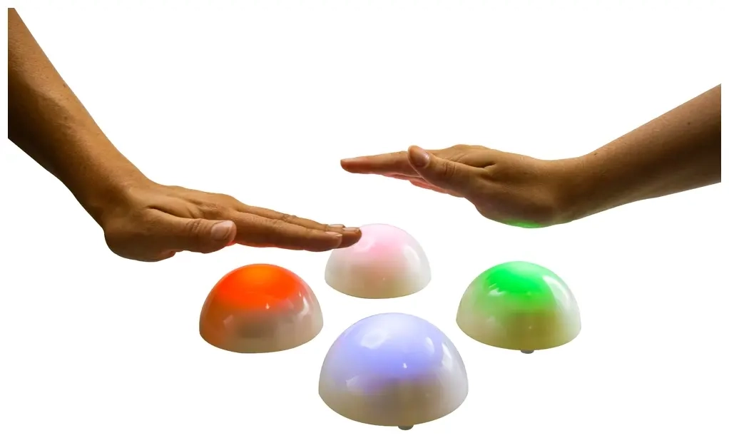Die vier enthaltenen Buzzer werden kabellos miteinander verbunden und können in acht verschiedenen Farben leuchten. Das macht es möglich, dass acht Spielern eine eigene Farbe zugeordnet werden kann.