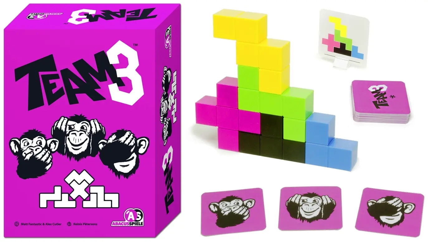TEAM3 kann kooperativ oder in 2 Teams gegeneinander gespielt werden und ist in 2 Versionen erhältlich: Grün und Pink.
