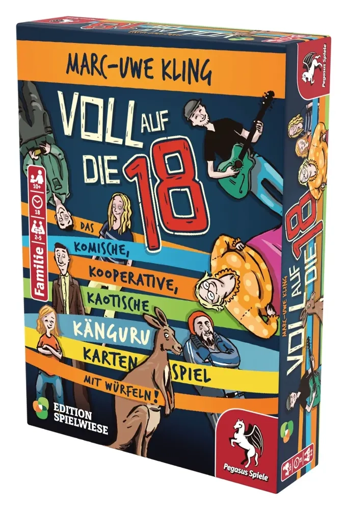 Passend zum zweiten Känguru Chroniken-Film erscheint mit Voll auf die 18 ein komisches, kooperatives und kaotisches Känguru-Kartenspiel mit Würfeln, das zudem auch noch 100 gute Argumente gegen Nazis bietet.