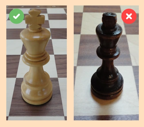 Ausgangspunkt ist dein Schachbrett. Miss die Seitenlänge es Feldes. Nur wenn du die Seitenlänge eines Feldes für dein Schachbrett kennst, kannst du auch die passenden Schachfiguren kaufen. Achte zudem auf das Material. Ist es aus Kunststoff, Holz oder nochmal etwas anderes?
