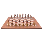 Die Trägerplatte im Innern des massiven Schachbrettes sorgt für Stabilität. Die Spielfläche ist eine feine Intarsienarbeit aus Nussbaum- und Ahornholz. Der breite Rahmen aus Nussbaumholz charakterisiert diesen Klassiker. Vier Filzrondellen auf der Rückseite sorgen für rutschfeste Partien und beugen ärgerlichen Kratzern auf der Tischplatte vor.