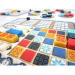 100 Fliesen aus Kunstharz, 4 Spielerablagen, 9 Manufakturplättchen, 4 Punktemarker, 1 Startspielermarker, 1 Stoffbeutel, 1 Spielanleitung