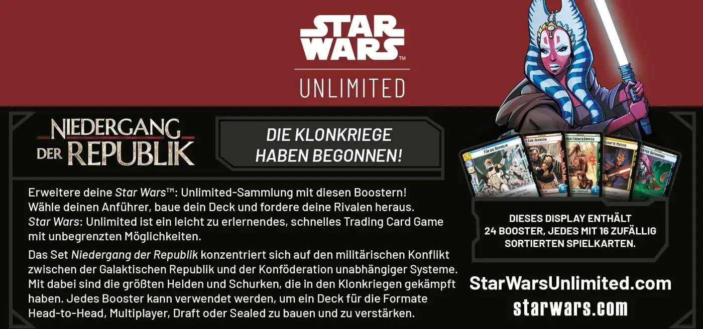 - Booster-Display für Niedergang der Republik, dem epischen, dritten Set von Star Wars: Unlimited