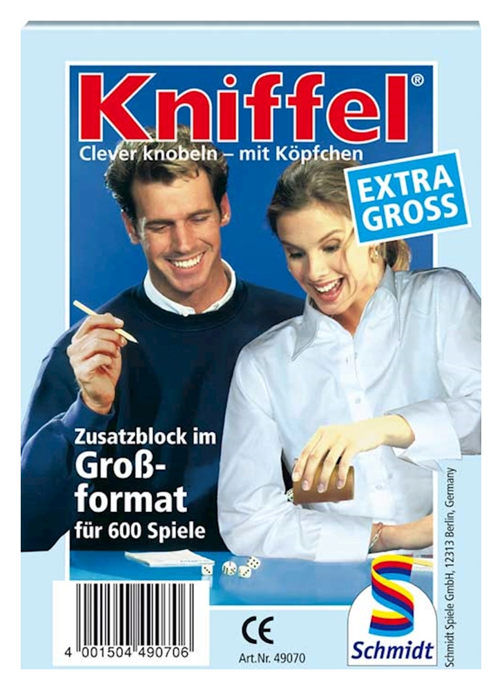 Platz genug für alle, die sich beim Kniffeln austoben wollen: Der KNIFFEL-Zusatzblock im Grossformat hat Platz für 600 grossartige Spiele und grosse Schriften.