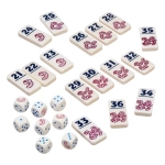 16 Bratwurmportionen mit den Werten 21-36, 8 Würfel mit je 6 Symbolen (einem Wurm und den Zahlen 1-5), 1 Spielanleitung
