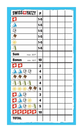 Swiss Yatzy Zusatzblöcke 2x50 Blatt