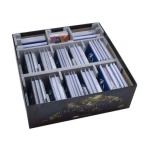 The design provides both efficient storage and improved game play giving quick access to your card decks. The rules and board act as a lid on top of the trays. The main card trays are made to store the cards on their side in a vertical position.