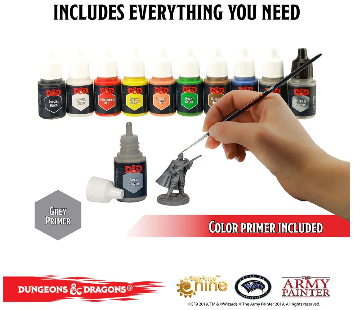 In addition, the D&D Adventurers Paint Set comes with a hand-made Starter Brush that is perfect for applying those first base coats, applying shades, and fine enough for adding highlights and layers as you progress with your painting.