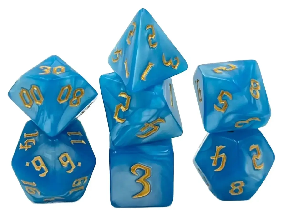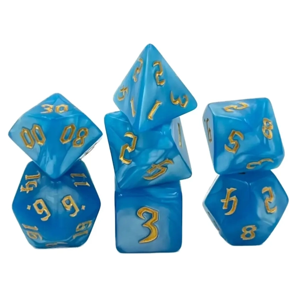 7-teiliges polyedrisches RPG-Würfelset bestehend aus den spieltypischen und relevanten RPG-Würfeln: D4, D6, D8, D10 (0-9), D10 (00-90), D12 und D20.